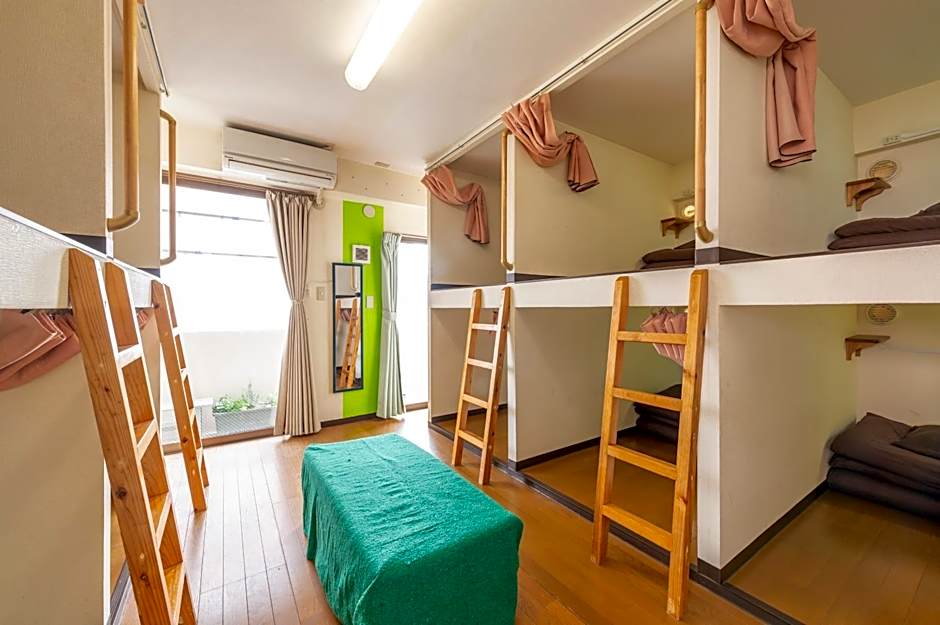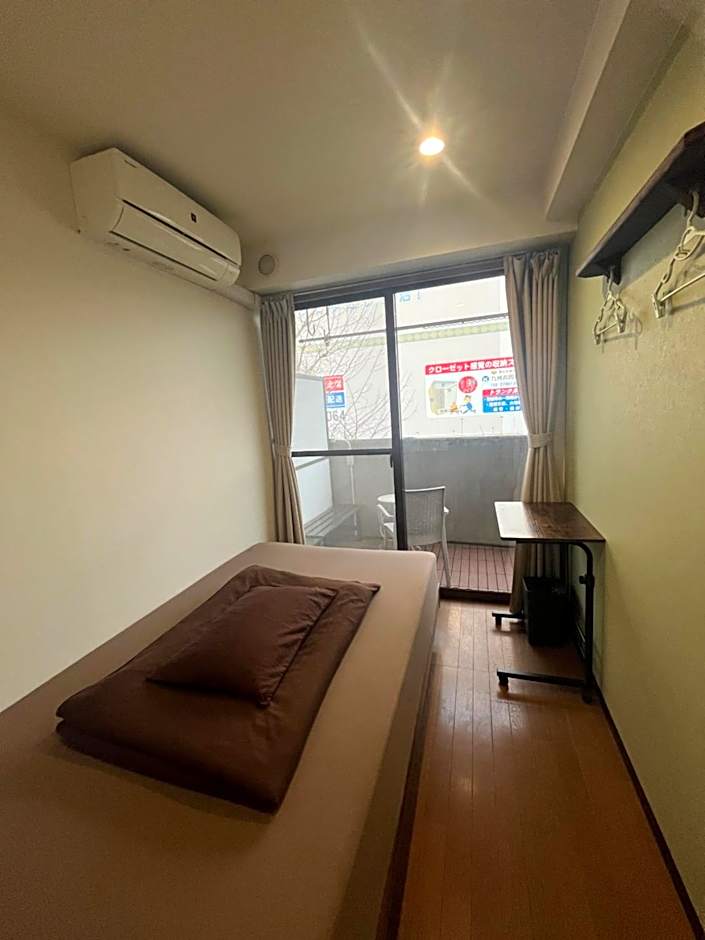 Features tatami (woven-straw) flooring and Japanese futon bedding. Bathrooms and toilets are shared. Smoking is permitted on the balcony.